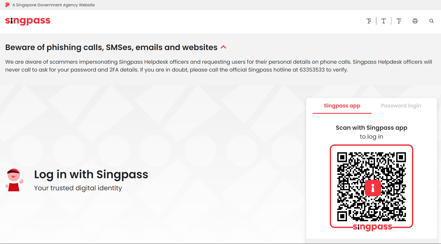 - To do this, open the SingPass app on your mobile device and scan the QR code displayed on the login screen.