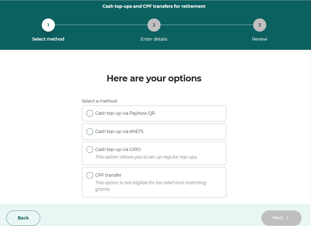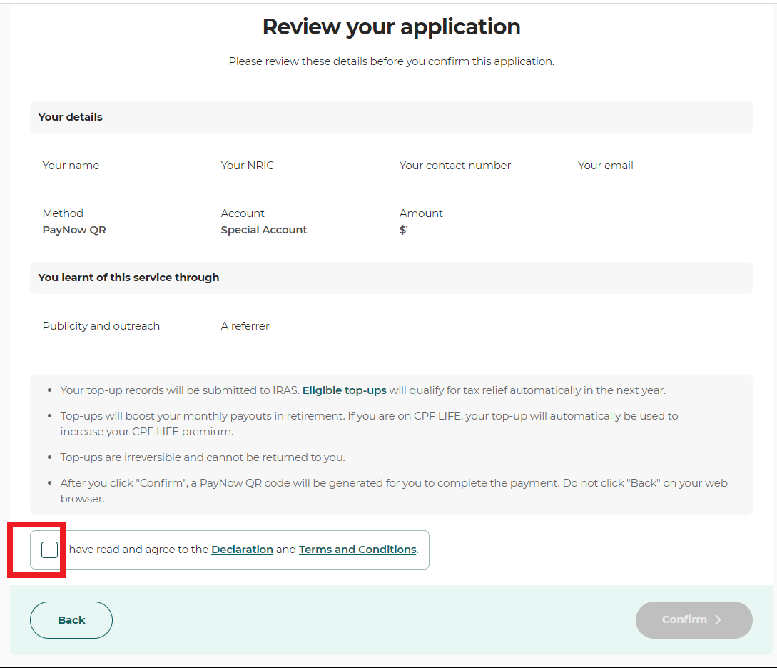 Follow the instructions to complete the CPF Special Account top up